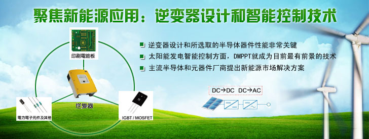 太陽能發(fā)電系統(tǒng)對(duì)半導(dǎo)體器件有什么樣的要求?這篇文章可以告訴大家。A/D轉(zhuǎn)換器、整流器、IGBT模塊、驅(qū)動(dòng)、傳感、MCU以及電容等元器件廠商都有望在新得市場(chǎng)上獲得契機(jī)。這些器件中,最重要的是逆變器,它的任務(wù)是把光伏單元可變的直流電壓輸出轉(zhuǎn)換為清潔的50Hz或60Hz的正弦電壓源,為了保證輸出電壓的穩(wěn)定,需要一系列器件的配合,例如傳感器來跟蹤太陽方位角、A/D轉(zhuǎn)換器來實(shí)現(xiàn)數(shù)據(jù)轉(zhuǎn)換,MCU來實(shí)現(xiàn)穩(wěn)定輸出的算法……那么主流半導(dǎo)體和元器件廠商是如何針對(duì)新能源市場(chǎng)打造解決方案的?我們將業(yè)界的趨勢(shì)和熱點(diǎn)作一次總結(jié),希望對(duì)讀者提供一定參考。