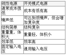 表1線性與開關(guān)電源對(duì)比