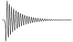 圖1中的電容、電感決定了震蕩頻率f0,電容容量和回路中的損耗決定了衰減的時間。當(dāng)電容C1=150μf,電感L1=200μh時,理論的震蕩頻率是914Hz,由于實際電路中存在誤差,實測值約800Hz,衰減的時間超過20ms。