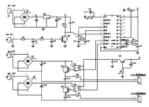 stc12c4052ad單片機(jī)自帶A/D轉(zhuǎn)換器,具有高速、高可靠性,強(qiáng)抗靜電(過4kV快速脈沖干擾),強(qiáng)抗干擾,寬電壓,不怕電源抖動等特點。它完成同步信號檢測(P3.2口,int0中斷輸入端)、控制信號輸出(P3.4、P3.5)、輸出強(qiáng)度調(diào)整(P1.1)和工作狀態(tài)指示等功能;整流橋Z1、三端穩(wěn)壓塊u2等構(gòu)成穩(wěn)壓電源,為整個控制電路提供電源;r1、r2、Q2等完成交流同步信號的輸入,其中,r1、C7、r2、C8濾除高頻脈沖的干擾,同步信號輸入到單片機(jī)的int0端;整流橋z2、z3、Q3、Q4等構(gòu)成獨立的電源,分別驅(qū)動可控硅SCR1、SCR2;光耦G1、G2將低壓控制電路與高壓驅(qū)動電路隔離,既保證了控制芯片和人身安全,同時具有抗干擾作用;三極管Q1及周圍電路,用于上電延時。上電時,C14不能突變,所以Q1處于截止?fàn)顟B(tài),Q3、Q4都不能導(dǎo)通,在單片機(jī)初始化完成后,P3.4、P3.5處于正常狀態(tài)時,Q1進(jìn)入導(dǎo)通狀態(tài),避免了SCR1和SCR2同時導(dǎo)通。