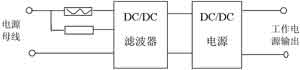 電源控制器使用的工作電源取自一次電源母線。為保護母線電源,在每個工作電源輸入端采用保險絲與限流電阻并聯(lián)保護措施,保護電路如圖3所示。