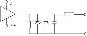 按建造設(shè)計規(guī)范要求,遙測輸出采用了雙向限幅電路和限流保護措施,保護電路如圖5所示。