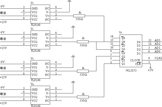 由于在本設計中,采用單片機作為測量系統(tǒng)的核心,因此,控制電路的核心也采用單片機,為了節(jié)約單片機的IO口,采用一片74LS175作為控制信號的鎖存器。驅動電路與控制電路的接口電路如圖6所示。