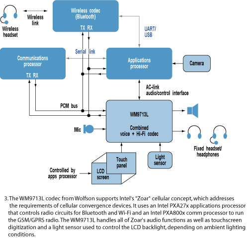 蘇格蘭的Wolfson微電子公司從事硬件音頻編碼解碼器的制造,該公司新產(chǎn)品開發(fā)部的副總裁PeterFrith指出,給手機(jī)加入回放MP3的功能,或者用于下載音樂,或者作為高質(zhì)量的鈴聲,意味著用戶已經(jīng)希望在手機(jī)中看到一個相對高保真的回放系統(tǒng)。因此,手機(jī)制造商目前期盼出現(xiàn)功耗甚至更低的便攜式DAC,且能夠達(dá)到100dB的信噪比。