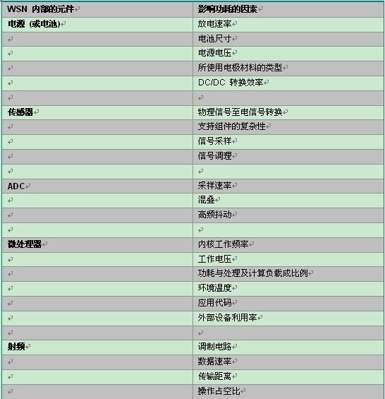 表 1:影響無線傳感器節(jié)點(diǎn)功耗的因素