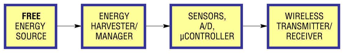 免費(fèi)能源 能量收集器/管理器 傳感器、A/D、微控制器 無線發(fā)送器 / 接收器