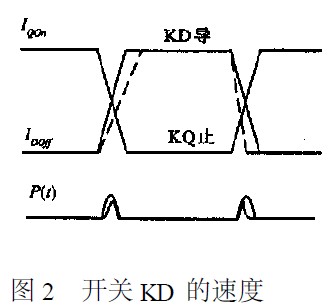 晶體管的開啟和關(guān)斷時間跟其截止頻率成反比。開啟、關(guān)斷時間越短,開關(guān)速度就越快。同時導(dǎo)通的持續(xù)時間取決于KQ和KD所使用的器件的開關(guān)速度。用速度不同的開關(guān)器件比較,開關(guān)器件的速度越快,同時導(dǎo)通的持續(xù)時間越短,尖峰干擾越是寬度窄、幅度大。