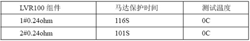 其次選取典型值電阻的LVR100和功率電阻集成的組件,來(lái)進(jìn)行0C/25C溫度下榨水果馬達(dá)堵轉(zhuǎn)保護(hù)時(shí)間,下表2為馬達(dá)的保護(hù)時(shí)間。