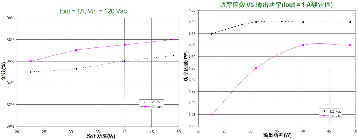 這90 W恒壓恒流演示板接受90至265 Vac的擴(kuò)展通用輸入電壓(更換元件條件下可支持305 Vac),提供0.7 A至1.5 A的恒定電流輸出范圍(可通過(guò)微幅調(diào)節(jié)電阻來(lái)選擇)及30 V至55 V的恒定輸出電壓范圍(可通過(guò)電阻分壓器來(lái)選擇),最大輸出功率90 W,支持50至1,000 Hz調(diào)光控制,并包含可連接至可選調(diào)光卡的6引腳接口,用于模擬電流調(diào)節(jié)/雙亮度等級(jí)數(shù)字調(diào)光等智能調(diào)光應(yīng)用。此外,這演示板還提供短路保護(hù)、開(kāi)路保護(hù)、過(guò)溫保護(hù)、過(guò)流保護(hù)及過(guò)壓保護(hù)等豐富保護(hù)特性。測(cè)試顯示,這演示板在50 W輸出功率、1,000 mA輸出電壓/48 V正向壓降條件的能效高于87%(詳見(jiàn)表1),在50%至100%負(fù)載條件下功率因數(shù)高于0.9,同時(shí)符合IEC61000-3-2 C類設(shè)備諧波含量標(biāo)準(zhǔn)。
