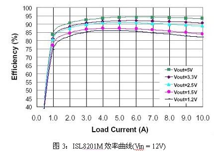 從效率的角度看,ISL8201M實現(xiàn)了極佳的性能。此外,QFN封裝優(yōu)良的熱性能可以實現(xiàn)非常緊湊的設(shè)計,而不需要散熱片。這使得ISL8201M達到了大約200W/in3的功率密度,約為傳統(tǒng)開放式框架模塊的4倍。