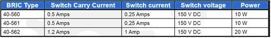 40-560系列和40-561系列BRIC模塊的最大負(fù)載電流是0.5A,接觸電阻是120 MΩ,開(kāi)關(guān)觸點(diǎn)閉合時(shí)會(huì)產(chǎn)生30mW的功耗。這個(gè)結(jié)果要好于線圈產(chǎn)生的65mW到100mW的功耗。一些額外的溫升也是很明顯的,但是并不是至關(guān)重要的。額外的溫度作用影響不大。