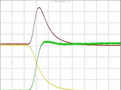 開關(guān)損耗其實(shí)也是一個(gè)很重要的指標(biāo)。從下圖可以看到,導(dǎo)通瞬間的電壓電流乘積相當(dāng)大。一定程度上決定了器件的開關(guān)性能。不過(guò),如果系統(tǒng)對(duì)開關(guān)性能要求比較高,可以選擇柵極電荷QG比較小的功率MOSFET。