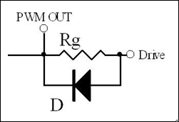 以上討論的是MOSFET ON狀態(tài)時(shí)電阻的選擇,在MOSFET OFF狀態(tài)時(shí)為了保證柵極電荷快速瀉放,此時(shí)阻值要盡量小。通常為了保證快速瀉放,在Rg上可以并聯(lián)一個(gè)二極管。當(dāng)瀉放電阻過(guò)小,由于走線電感的原因也會(huì)引起諧振(因此有些應(yīng)用中也會(huì)在這個(gè)二極管上串一個(gè)小電阻),但是由于二極管的反向電流不導(dǎo)通,此時(shí)Rg又參與反向諧振回路,因此可以抑制反向諧振的尖峰。