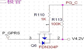 來看這個電路,控制信號PGC控制V4.2是否給P_GPRS供電。此電路中,源漏兩端沒有接反,R110與R113存在的意義在于R110控制柵極電流不至于過大,R113控制柵極的常態(tài),將R113上拉為高,截至PMOS,同時也可以看作是對控制信號的上拉,當MCU內(nèi)部管腳并沒有上拉時,即輸出為開漏時,并不能驅動PMOS關閉,此時,就需要外部電壓給予的上拉,所以電阻R113起到了兩個作用。R110可以更小,到100歐姆也可。
