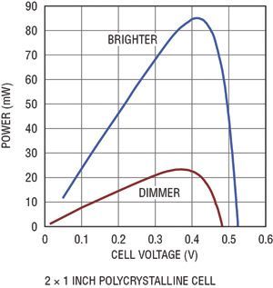 相比之下,靠室內(nèi)照明光工作的設(shè)備可用能量要少得多。常見的室內(nèi)照明光的強度約為充足太陽光的0.25%(室內(nèi)照明光強度與太陽光強度的巨大差別難以察覺,因為人眼能適應(yīng)很寬的光照強度范圍)。室內(nèi)應(yīng)用可用的光照量低得多,因此呈現(xiàn)了一些設(shè)計上的挑戰(zhàn)。即使面積為4平方英寸的大型高效率晶體電池,在典型辦公室照明條件下,也僅能產(chǎn)生860μW功率。