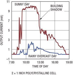 用光伏電池可產(chǎn)生多少功率取決于多種因素。電池的輸出功率與投射到電池上的光強度、電池的總面積以及電池的效率成正比。大多數(shù)光伏電池都規(guī)定在完全直射的太陽光 (1000W/m2) 下使用,但是在大多數(shù)應(yīng)用中,不可能有這么理想的條件。就依靠太陽光工作的設(shè)備來說,可從電池獲得的峰值功率可能非常容易變化,由于天氣、季節(jié)、煙霧、灰塵和太陽光入射角的變化,今天與明天相比有可能相差10倍。在充足的太陽光照下,晶體電池視電池特性的不同而有所不同,典型輸出功率約為每平方英寸40mW。面積為幾平方英寸的光伏電池足夠給多個遠程傳感器供電以及給電池涓流充電了。