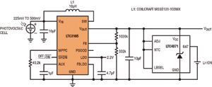 另一個關(guān)鍵考慮因素是能量存儲器件的充電速率。例如,最大充電電流為300μA的鋰離子幣形電池需要在電池和 LTC3105輸出之間有一個大的電阻器,以防止過流情況。這可能限制能收集的能量,從而減少可用于應(yīng)用的能量。