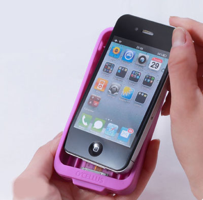 O`cellus采用的充電板設(shè)計,其主要特點在于安裝太簡單了,插電即用,把手機放進保護套, 再放到充電板上即可以開始充電.