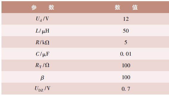 根據(jù)以上參數(shù)設置可得到電感上峰值電流為IP = 1. 4 A,輸出電壓UO = 10. 5 V。仿真電路圖如圖5 所示。