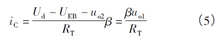 式中,UDZ為二極管壓降,其值等于PNP 晶體管VT 的射極E 與基極B 之間的壓降。電路選擇參數(shù)使uo1 = 0 時晶體管VT 處于微導通狀態(tài),iC≈0,晶體管VT 的補償電流為:
