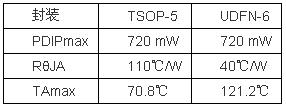 需要注意的是,NCP1529同時(shí)提供TSOP-5和µDFN-6封裝,我們可以快速地確定每種封裝選擇對工作性能的影響。表1歸納了各種封裝的功率耗散、封裝熱阻抗和計(jì)算出的最高環(huán)境溫度。