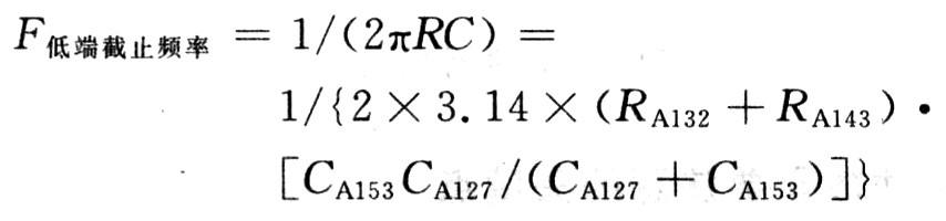 TFA9810T輸入端采用可抑制共模干擾的全差分輸入電路。以圖8 AMP-Rin輸入端為例,RA128/RA133/CA139構(gòu)成負(fù)反饋低通濾波器,用于衰減反饋信號中高頻載波成分。增加低頻成分反饋量,特別是直流成分。有效改善了零輸入時因輸入信號直流電平與比較器門限電壓差異形成的占空比誤差,調(diào)整RA128也可實(shí)現(xiàn)TFA9810T增益控制,使Au(dB)=20log(VOUT/VIN)≌20log(RA128/RA132)。器件CA153/RA132/RA133及TFA9810T內(nèi)阻構(gòu)成高通濾波器,用于對輸入信號的緩沖。若CA153容值過小,會影響低頻響應(yīng),理論確定公式為: