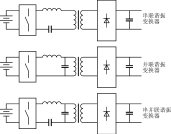 圖12給出這些基本的諧振變換器拓?fù)涫疽鈭D。在串聯(lián)諧振變換器中,諧振電感與變壓器原邊串聯(lián),而其他類(lèi)型變換器中,電容與變壓器串聯(lián)。只有串聯(lián)諧振變換器是硬電流源特性,而其他類(lèi)型變換器是硬電壓源型。