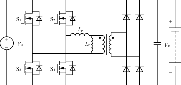 與充電模式2類(lèi)似,充電變換器可以直接采用全橋或帶諧振的全橋變換器。但是,由于充電模式3功率級(jí)更高,與諧振式全橋變換器相比,一般的全橋變換器必然會(huì)對(duì)應(yīng)很高的峰值電流。因此,應(yīng)當(dāng)考慮采用ZVS或ZCS諧振全橋拓?fù)鋪?lái)有效降低損耗。