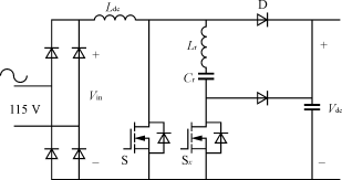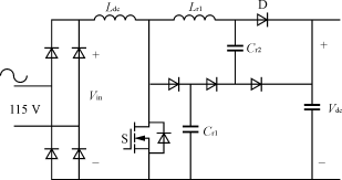 對(duì)于1.5kW功率等級(jí),輸入電流有效值為15A,平均開(kāi)關(guān)電流是13A,峰值電流為22A,需要電流定額至少為30A的開(kāi)關(guān)器件。盡管這個(gè)方案提供了比較簡(jiǎn)單的單級(jí)功率變換,但也存在一些缺陷,如半導(dǎo)體器件承受的電壓應(yīng)力較高、輸出電壓調(diào)節(jié)性能差,輸出電流紋波大。