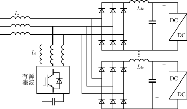 有源濾波器定額約為充電站額定功率定額的20%。在整流端一般采用直流側(cè)電感來(lái)提高整流器的功率因數(shù),可以選用串聯(lián)或并聯(lián)方式的有源濾波方案。
