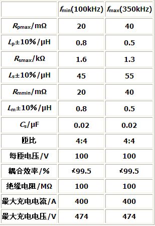 根據(jù)SAE J-1773標(biāo)準(zhǔn)給出的感應(yīng)耦合器等效電路,連接電纜和電池負(fù)載的特性,可以得出感應(yīng)耦合充電變換器應(yīng)當(dāng)滿(mǎn)足以下設(shè)計(jì)標(biāo)準(zhǔn)。