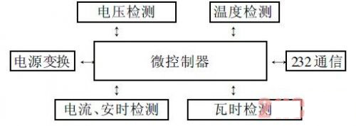 數(shù)據(jù)采集系統(tǒng)硬件結(jié)構(gòu)如圖2所示, 主要包括以下幾個模塊:微控制器、電源模塊、電流及安時檢測模塊、瓦時檢測模塊、電壓檢測模塊以及通信接口電路。