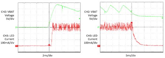 在根據圖1的電路圖配置的電路中,啟動和斷電瞬態(tài)如圖4所示。