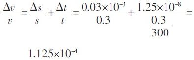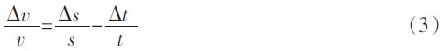 為依據(jù)國標(biāo)QBT2443-1999 的規(guī)定計(jì)算。規(guī)定一級鋼卷尺自零點(diǎn)端起到任意線紋的示值誤差限為:Δ=(0.1+0.1L)mm,L 單位為m。若測試距離取0.3m,Δs 取0.03mm,待測運(yùn)動物體速度為300m/s,那么將數(shù)據(jù)代入式(4)得到系統(tǒng)測速的最大相對誤差為: