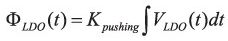 與VCO噪聲類似,LDO的相位噪聲貢獻(xiàn)可以看成加性成分LDO(t), 如圖4所示。再次使用VCO超額相位表達(dá)式得到: