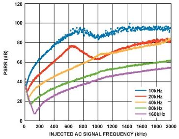 在PLL系統(tǒng)中,較高的VCO推壓意味著VCO電源噪聲的增加倍數(shù)更大。為盡可能降低對(duì)VCO相位噪聲的影響,需要低噪聲電源。