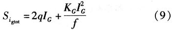 其中,JG是柵極電流密度,L是溝道長度,W是溝道寬度,x是沿溝道的位置(源極處x=0,漏極處x=L),IGS和IGD是柵極電流的柵/源和柵/漏分量。通過線性化柵電流密度與位置的關(guān)系,簡化這些等價噪聲電流分析表達式,所得的總柵極電流噪聲表達式為