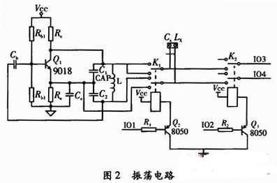 采用LC振蕩器的振蕩原理,LC振蕩器選擇L或是C參數(shù)為固定值。通過LC的組合,振蕩器起振,當(dāng)測量電容時(shí)電感固定,測量電感時(shí)電容固定。通過LC振蕩器的頻率計(jì)算公式