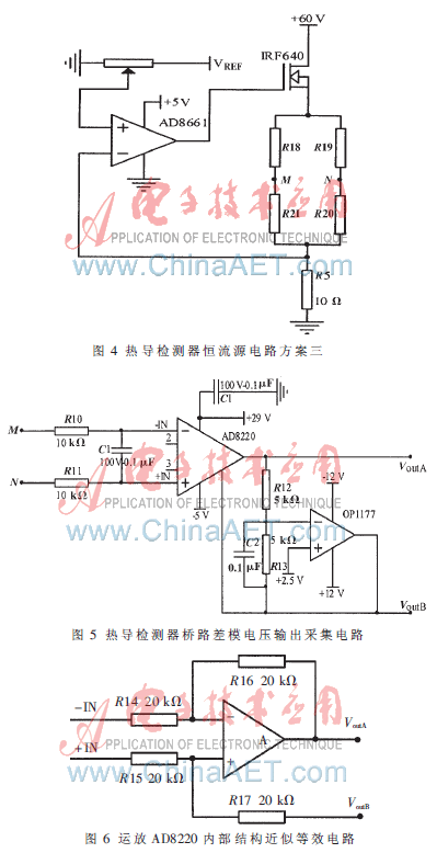 本文對三套恒流源進行分析、比較、實驗,表明方案一的基線噪聲、溫度漂移小,優(yōu)于現(xiàn)有色譜儀熱導(dǎo)檢測器的指標,而且電橋檢測電路承受的共模電壓小,有利于保護檢測電路。