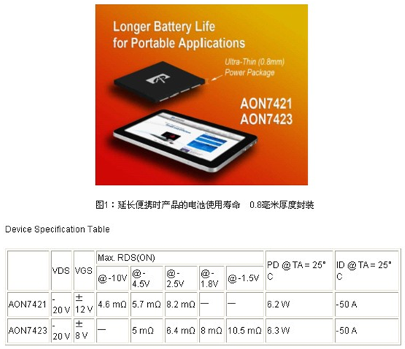 新的產(chǎn)品上應(yīng)用了AOS的AlphaMOS專利技術(shù)。這些技術(shù)的好處在于它可以延長電池的使用壽命,還可以使設(shè)計變的更簡單緊湊,適用于便攜式產(chǎn)品,例如:平板電腦、智能手機,電子書、筆記本電腦、數(shù)碼相機及便攜式音樂播放器。