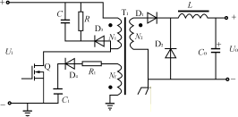 開關(guān)穩(wěn)壓電源與傳統(tǒng)的線性穩(wěn)壓電源相比具有體積小、重量輕、效率高等優(yōu)點(diǎn),已成為穩(wěn)壓電源的主流產(chǎn)品。為使電源結(jié)構(gòu)簡單、緊湊,工作可靠、減少成本,小功率開關(guān)穩(wěn)壓電源常采用單端反激型或單端正激型電路。與單端反激型相比,單端正激型開關(guān)電流小、輸出紋波小、更容易適應(yīng)高頻化。用電流型PWM控制芯片UC3843構(gòu)成的單端正激型開關(guān)穩(wěn)壓電源的主電路如圖1所示。