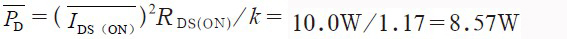 (3)若考慮到還有關(guān)斷損耗,從圖3中可查出PD=510mW=0.51W(UDS(OFF)=600V)。假定占空比為50%,在計(jì)算平均功耗時(shí)應(yīng)將關(guān)斷損耗除以2。因此PD=9.72W+0.51W/2=9.975W,該結(jié)果就與10.0W非常接近。