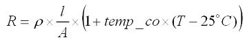 電感線圈的電阻溫度系數(shù)導(dǎo)致電感直流電阻會(huì)隨著溫度變化。線圈通常為銅制,溫度系數(shù)約為 3.9mΩ/℃,計(jì)算其電阻的等式如下: