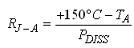我們需要的是代表實(shí)際電路的準(zhǔn)確RJ-A。測(cè)量RJ-A有多種方法,一種方法是使用熱關(guān)機(jī)閾值,將其設(shè)置為+150℃。要用這種方法測(cè)量RJ-A,我們可以讓LM3554在已知功耗(PDISS)下工作,然后慢慢提高環(huán)境溫度直到器件關(guān)機(jī)為止。該器件具有一個(gè)內(nèi)部標(biāo)志,可以通過I2C兼容接口設(shè)置,在觸及熱關(guān)機(jī)閾值時(shí)會(huì)返回‘1’。使用這種方法獲得的RJ-A將為: