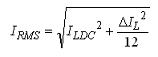 針對(duì)我們的情況,VOUT=VLED+300mV,且效率大約為90%。這可以算出PFET占空比(1-D)為83%,NFET占空比為17%。RMS電感電流等式為: