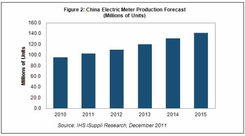 迄今為止,國家電網(wǎng)公司在2011年進行了五輪智能電表招標,第五輪招標在11月底進行,正好是在撰寫本文的時候。通過這五輪招標,國家電網(wǎng)公司可能總計要采購大約6830萬個電表,其中5970萬個是智能電表。IHS公司認為,五輪招標金額將超過18億美元,國家電網(wǎng)公司表示將從明年開始大規(guī)模建設。