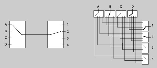 一系列復雜的開關拓撲在RF開關中得以采用。矩陣式開關可以實現(xiàn)每個輸入與每個輸出的連接。有兩種類型的矩陣在微波開關架構中得以采用—— blocking和non-blocking架構。一個blocking矩陣可將任意一個輸入和任意一個輸出進行連接,因此其他的輸入和輸出就不能同時連接。這對只需在一個時刻切換到一個信號頻率的應用是一個有效的低成本方案,信號完整性也更好,因為有更少的繼電器路徑,特別是避免了相位延遲的問題。而 non-blocking矩陣允許多個路徑的同時連接,這種架構具有更多的繼電器和線纜,因此靈活性更強,不過價格也更高。
