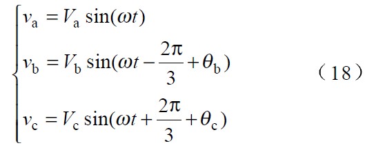 三相輸入電壓不對(duì)稱時(shí),假設(shè)各相電流跟蹤各自的相電壓此,時(shí)可令從輸入端看進(jìn)去各相對(duì)中線的等效電阻為Ra ,Rb 和Rc 。因系統(tǒng)采用三相三線制在任意時(shí)刻均有: