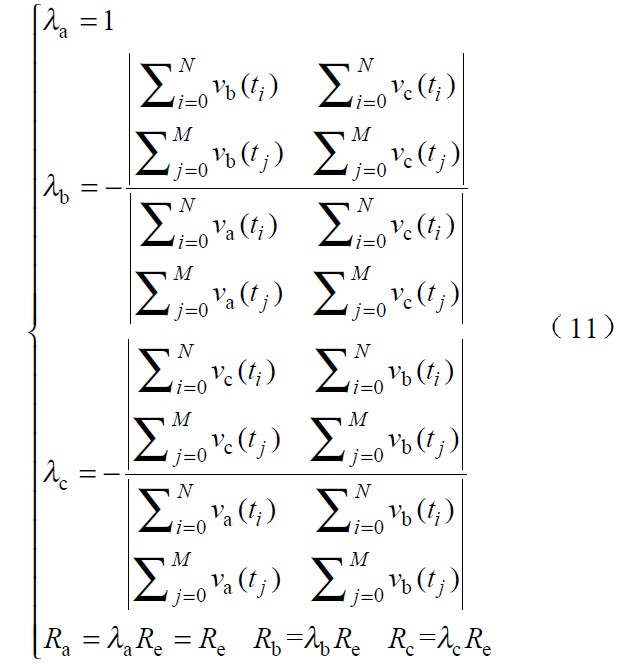 式 (11 )為相電壓不對(duì)稱系數(shù)的計(jì)算公式,其中λa ,λb 和λc 為相電壓不對(duì)稱系數(shù),Re 為標(biāo)準(zhǔn)等效電阻??梢姡?dāng)電網(wǎng)電壓不對(duì)稱時(shí),為使各相電流仍能正確跟蹤對(duì)應(yīng)相電壓,各相等效電阻值是不同的。特殊地,如果三相電壓對(duì)稱,λa=λb=λc =1 ,則Ra=Rb=Rc=Re.