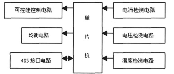 充電機(jī)本體實(shí)際上是一個(gè)實(shí)時(shí)監(jiān)測(cè)和控制系統(tǒng),結(jié)構(gòu)框圖如圖1所示,它按照接收到的上位機(jī)命令完成對(duì)蓄電池充電過(guò)程的監(jiān)控,并實(shí)時(shí)地將檢測(cè)到的充電參數(shù)返回給上位機(jī),這些參數(shù)包括蓄電池端電壓、充電電流和電池溫度等。圖2的主充電路實(shí)現(xiàn)充電電流、電壓的控制,是充電機(jī)的關(guān)鍵環(huán)節(jié)。圖3的均衡電路解決由于電池制造工藝的不同等原因引起的電量不均衡; 485接口電路實(shí)現(xiàn)充電機(jī)本體與上位機(jī)的通信;電流、電壓、溫度檢測(cè)電路實(shí)時(shí)地檢測(cè)充電的電流、電壓和電池溫度。